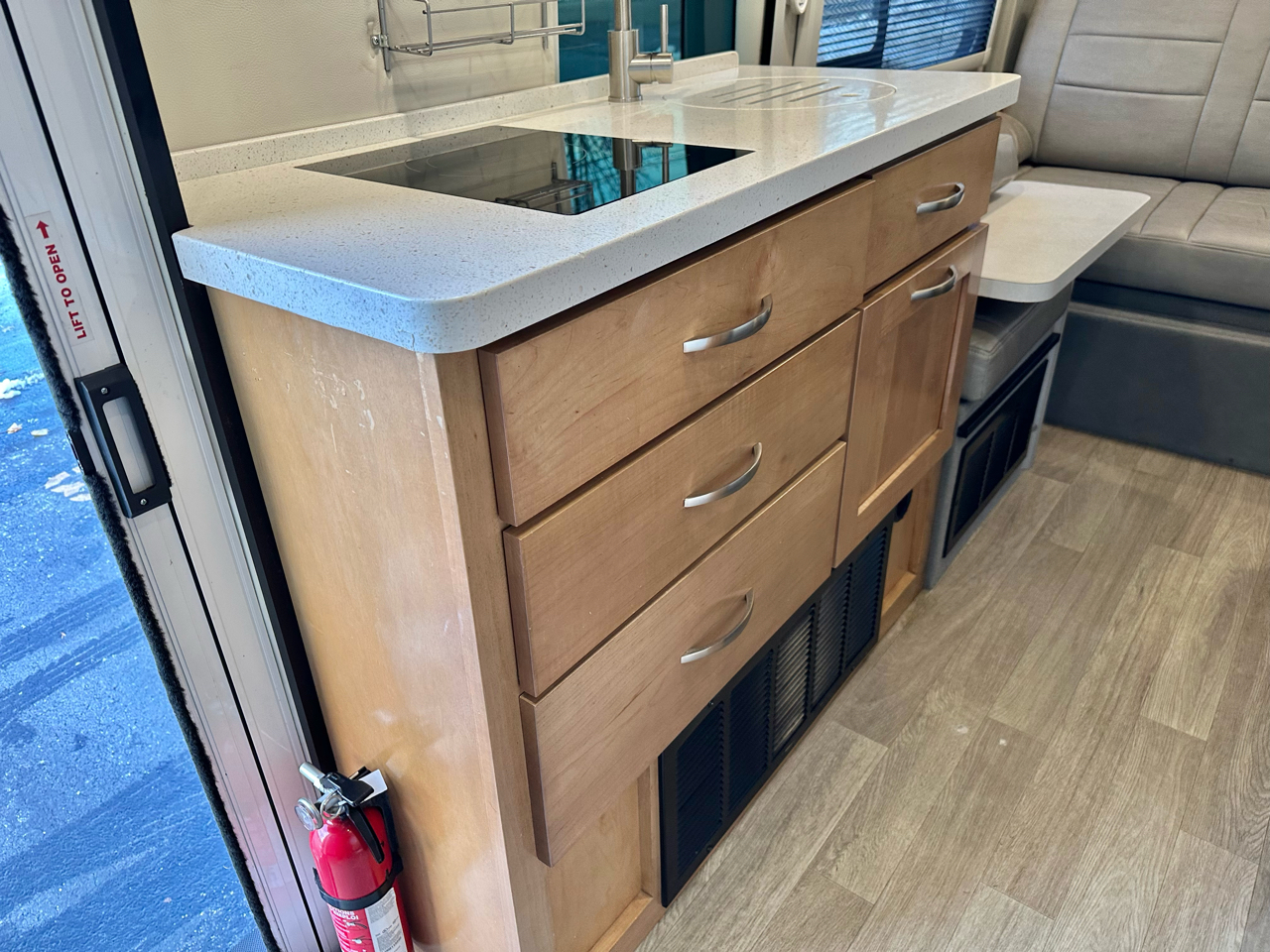 -9.7 gal LP, 27 gallon water tank, 15 gallon grey tank, 112 gallon black tank.