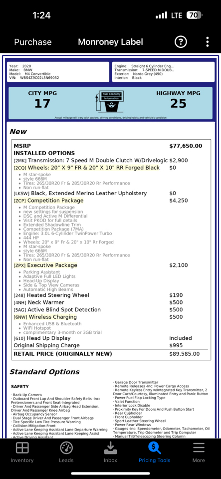 Get ready to experience the ultimate heart-pounding performance in this sleek and sophisticated ALL STOCK Gray 2020 BMW M4 Competition Nardo Grey in color! This beauty comes fully loaded with all the bells and whistles you could ever dream of, while providing top-notch safety features to ensure a smooth ride every time you hit the road. With its immaculate leather interior and front heated seats, you'll feel like royalty while cruising around town. This M4 also boasts alloy wheels that perfectly complement its sporty design, making sure all eyes are on you wherever you go. The driver multi-adjustable power seat and telescopic steering column offer personalized comfort and convenience, while the power windows make adjusting your environment a breeze. Rest easy knowing that the vehicle anti-theft system is in place to keep your prized possession safe and secure. And the best part? A carfax report is available for your peace of mind, so you can trust in the quality and performance of this exceptional BMW M4. So what are you waiting for? Come test drive this beauty today and elevate your driving experience to a whole new level!